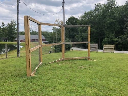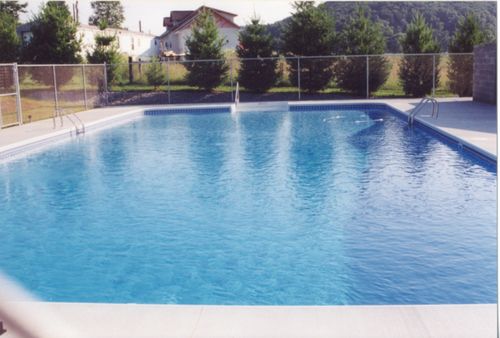 The 40 x 60 in-ground swimming pool was installed by David Wilson, including a diving board and slide. The installation included a pool house consisting of eight showers, four restroom stalls, four sinks and a pump room for filters and plumping.